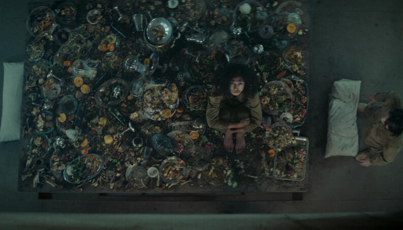 O Poço é uma distopia bem futurista, mas que retrata a valorização e a compreensão do que cada andar pode proporcionar hierarquicamente na vida humana. Quando Goreng (Ivan Massagué) se voluntaria para estar no poço, é notório que ele não faz ideia do que aquilo se trata. Resumindo, o poço é uma espécie de prisão, de experimento humano. Seu formato vertical separa duas pessoas por andar em 333 níveis. Caso tenha feito a mesma conta do que eu, sua cabeça o levou para um pensamento que deixa ainda mais dúvidas. E a luz no fim do túnel (vertical) que só pode ser vista por quem chega realmente no fundo do poço... São várias vertentes e diretrizes. Acho que a intenção do longa é realmente esta. Muitas referências sociais, críticas e analogias podem ser encontradas e trabalhadas em cima desse terror.